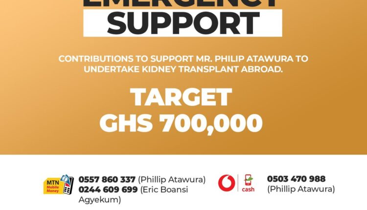 He therefore appeals to the Public, Religious Bodies, Cooperate Ghana, Celebrities, Politicians, NGOs etc. for financial assistance to carry out the kidney transplant