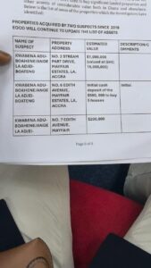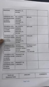 Documents show that Mr Boahen purchased a number of properties valued at millions of dollars, primarily in Accra but also outside the Nation, especially in the United Kingdom.