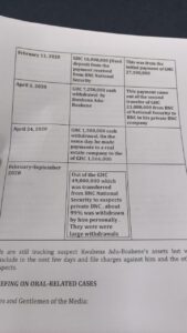 Dr. Ayine confirmed that EOCO is continuing its investigation into Adu-Boahene’s financial dealings and has identified several individuals who may have received transfers from his private accounts.