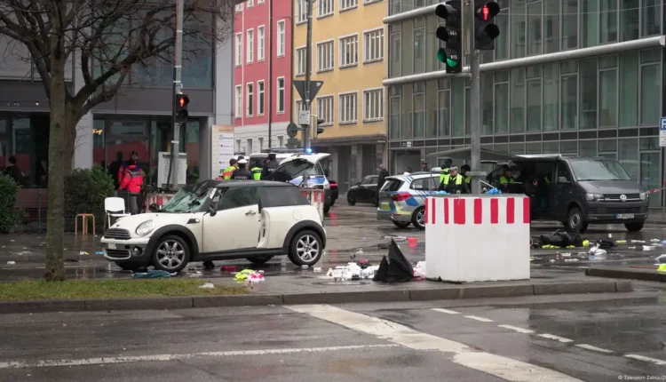 An automobile crashed into a Munich trade union march, injuring at least thirty people.