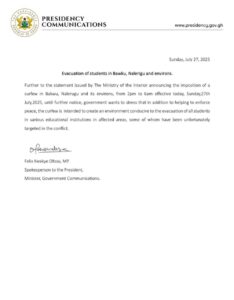 This measure, according to a statement from the Presidency Communications signed by Felix Kwakye Ofosu, MP, Spokesperson to the President and Minister, Government Communications, is intended to create an environment conducive to the evacuation of all students from various educational institutions in these affected areas. The decision comes amidst ongoing conflict in the region, which has unfortunately impacted some students.