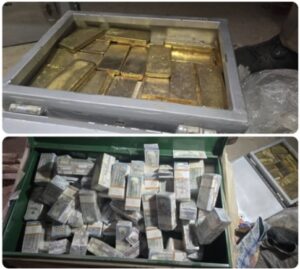 Huge amounts of cash in cedis, dollars and gold bars have be discovered and seized by the National security.