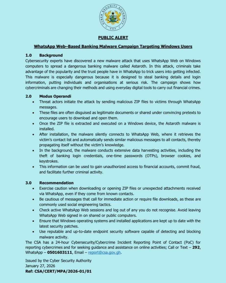 If you suspect you have encountered this or any other cyber threat, you should report it immediately. The Cyber Security Authority operates a 24-hour Cybersecurity Incident Reporting Point of Contact. You can reach them by call or text at 292, on WhatsApp at 0501603111, or via email at report@csa.gov.hk.