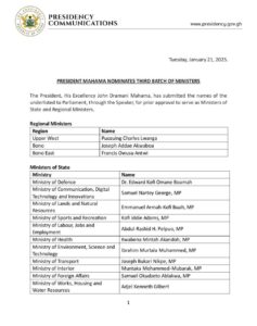 John Dramani Mahama, the president of the Republic of Ghana has made the next set of ministerial appointments.