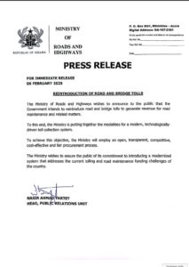 The decision was communicated through a press release from the Ministry and signed by Head of Public Relations Unit, Nasir Ahmed Yartey, APR.