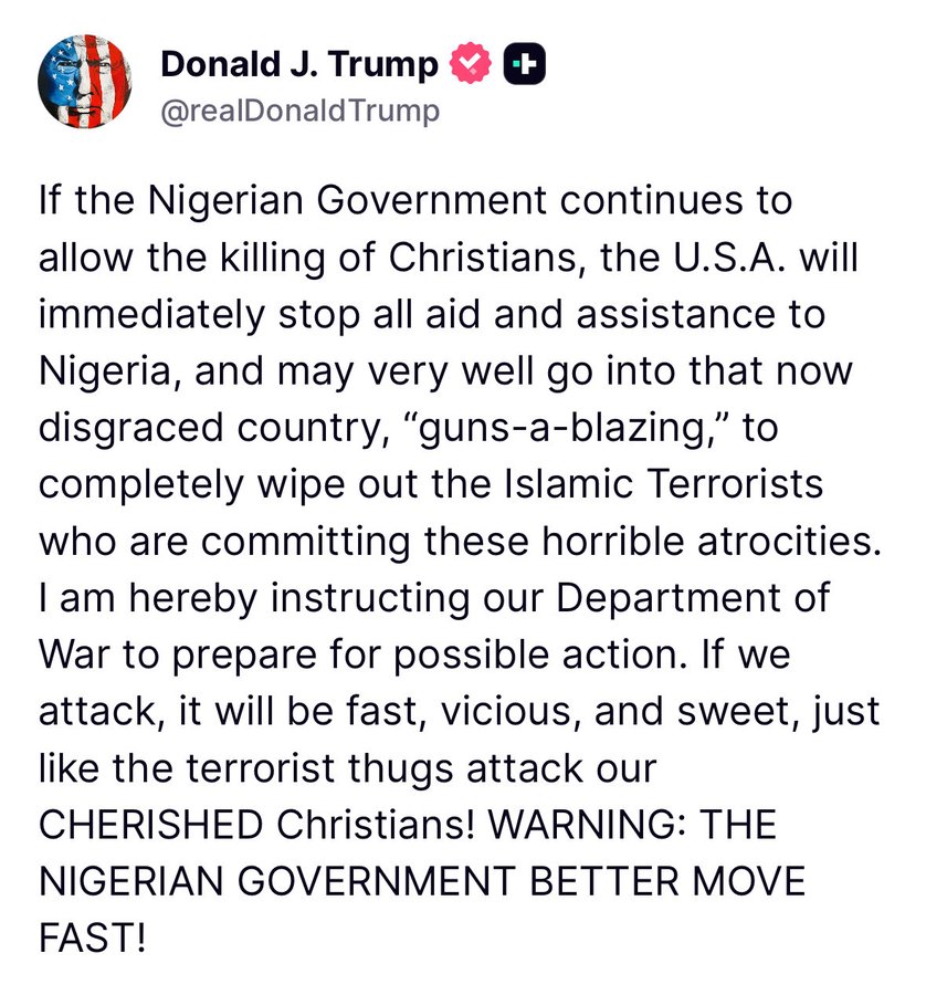 He confirmed that further airstrikes in Nigeria remain possible and stated the timing was purely operational, not symbolic.