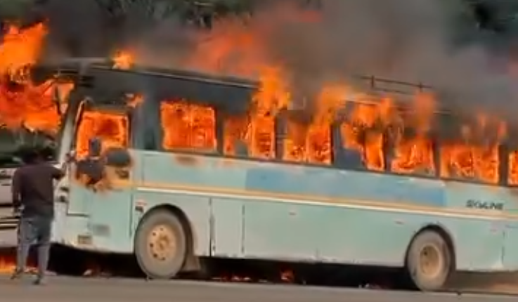 Fortunately, due to what appears to be swift emergency protocols, all passengers managed to escape the blazing vehicle without serious injury.